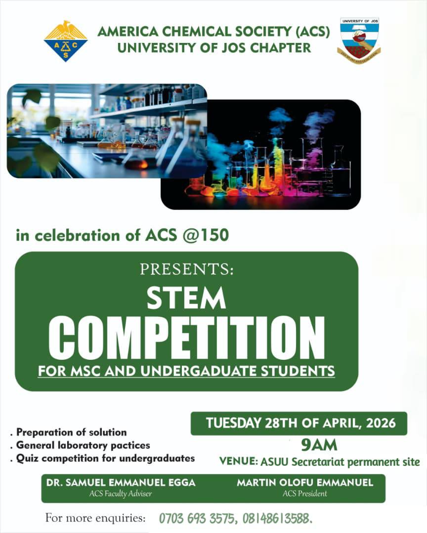 Is a duly registered and recognized Student Member of the American Chemical Society, University of Jos Chapter, demonstrating commitment to CHEMISTRY FOR LIFE.